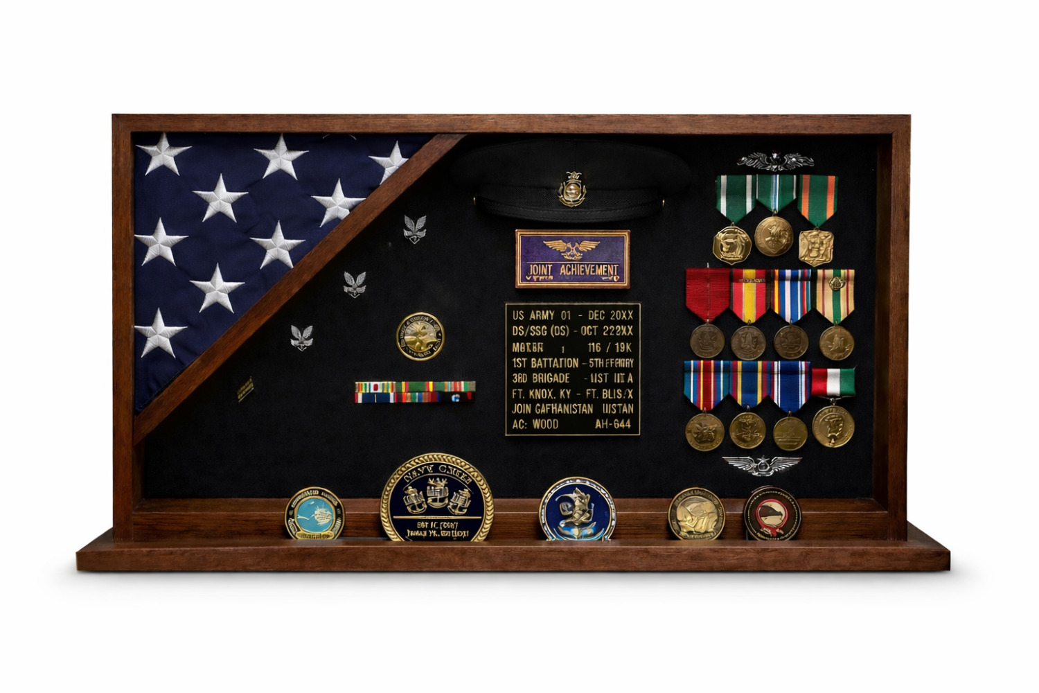 Each shadow box is crafted with attention to detail and built to honor the service and story behind the uniform.