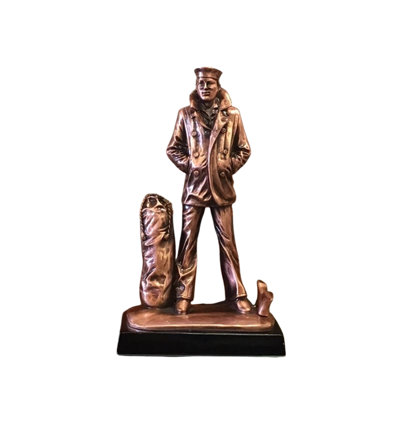 THIS HANDSOME STATUE IS 15″ TALL, COPPER AND ON A 9″ WIDE BASE READY FOR YOU TO ADD PERSONALIZATION! PLEASE PUT ENGRAVING REQUEST IN THE REMARKS SECTION