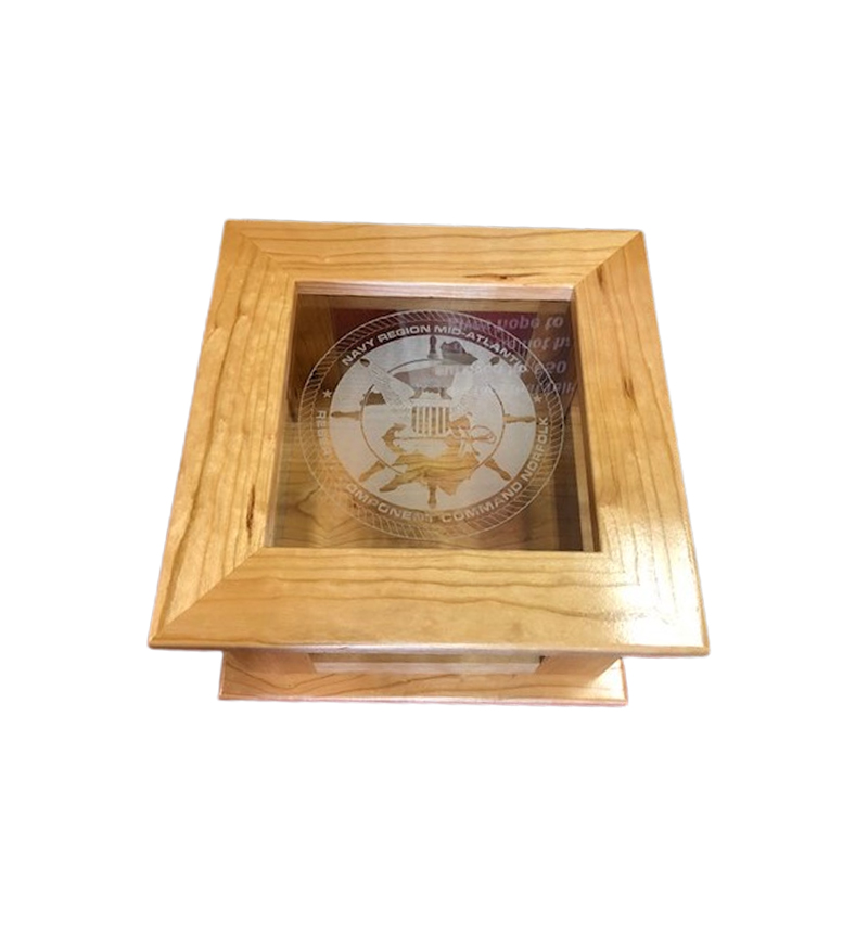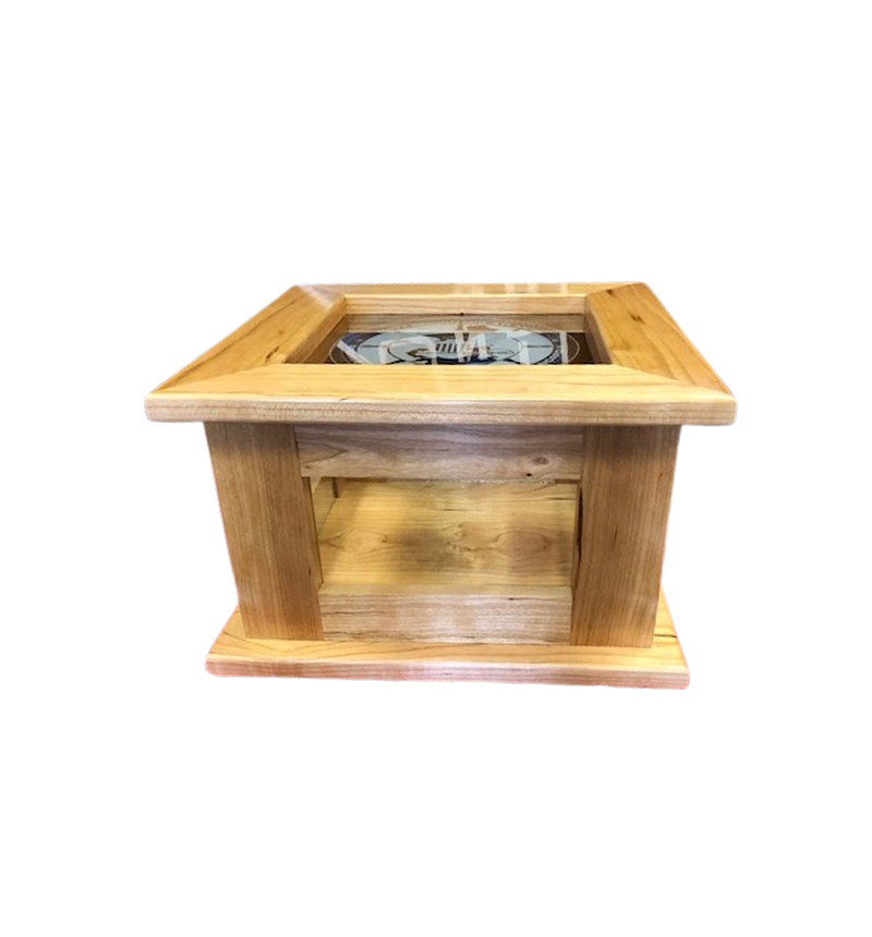 BEAUTIFULLY CONSTRUCTED OF OAK, NATURAL CHERRY OR MAHOGANY , PROUDLY DISPLAY THE COMBINATION COVER , ENGRAVING ON THE LID IS INCLUDED – ALL GLASS PANELS CAN BE ENGRAVED FOR AN ADDITIONAL CHARGE. LIGHT KIT IS $100 EXTRA.  PLEASE ALLOW 2-3 WEEKS TO BUILD, PLUS 5 BUSINESS DAYS FOR ENGRAVING.
