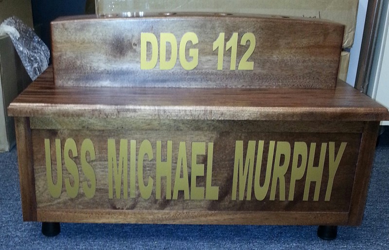 Manufactured in the USA, Beautifully crafted four hole two tier flag stand, Weighted for stability, brass handles on the sides, rubber feet on the bottom. Price includes ship/command name and hull number (if applicable) The letters are laser cut black acrylic with a gold vinyl face IF another type of letter is required additional fees will be incurred. Mahogany wood is pictured, otherwoods are available please send me your request and I will return a quote. Allow 3-4 weeks for manufacture.