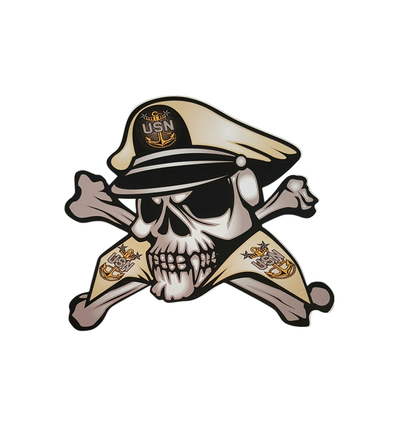 We provide skull stickers for enlisted, chief, and officers. Male and female, ranks and rates are interchangeable (The rate symbol will go inside the right eye) . The price is $1. 00 an inch on average. Subject to change depending on details.