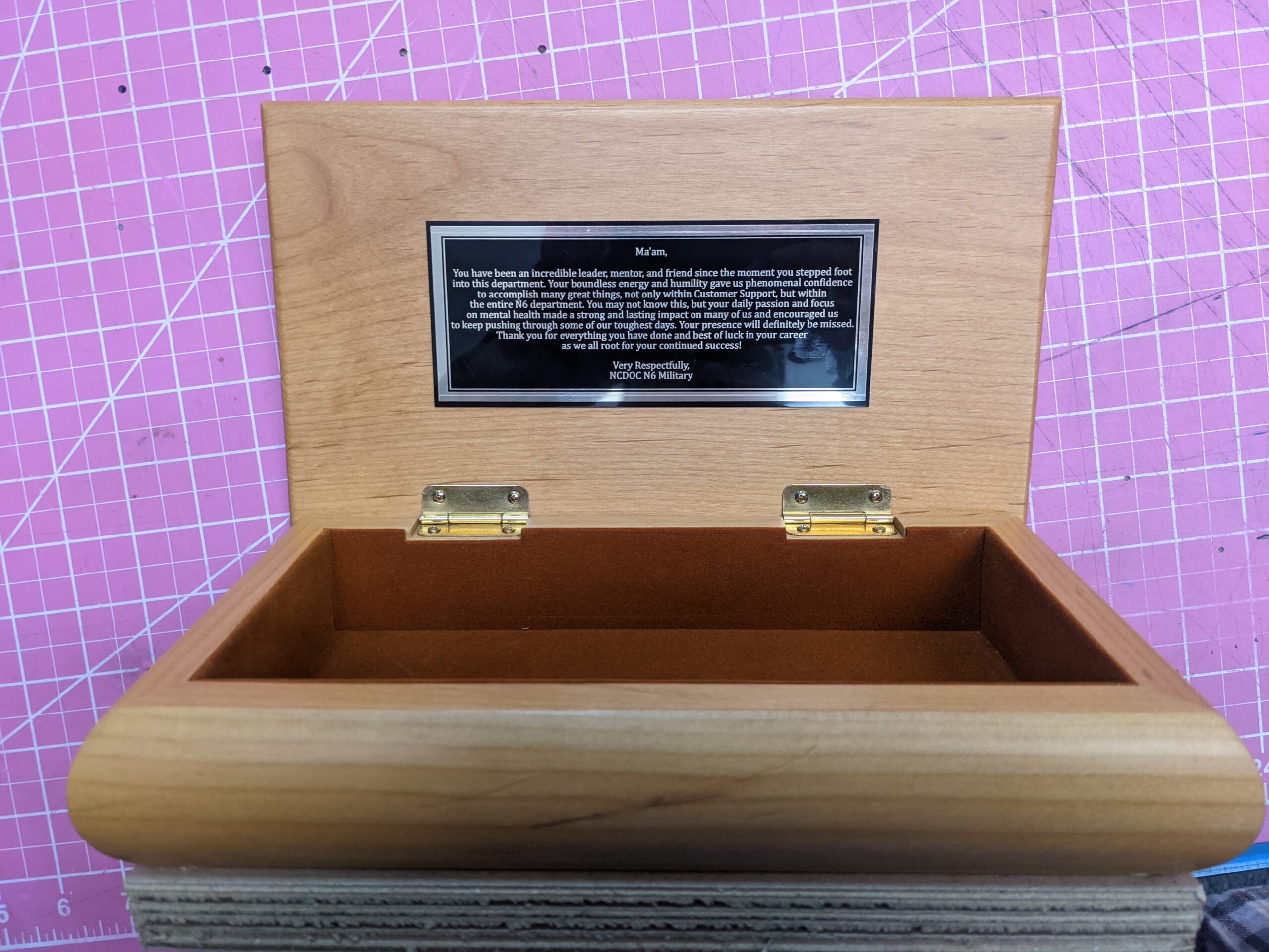 TRINKET BOX – SMALL WITH ENGRAVING ON LID AND INSIDE PLATE