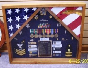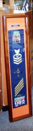 Perfect for displaying military medals, insignias, or cherished keepsakes, this shadow box transforms history into a striking display. Contents are not included, but optional add-ons like mounting ($60.00) and standard two-plate engraving ($65.00) allow for full customization, making it a distinguished tribute for any space.