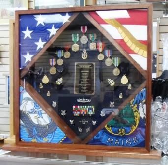 THREE FLAG DISPLAY CASE