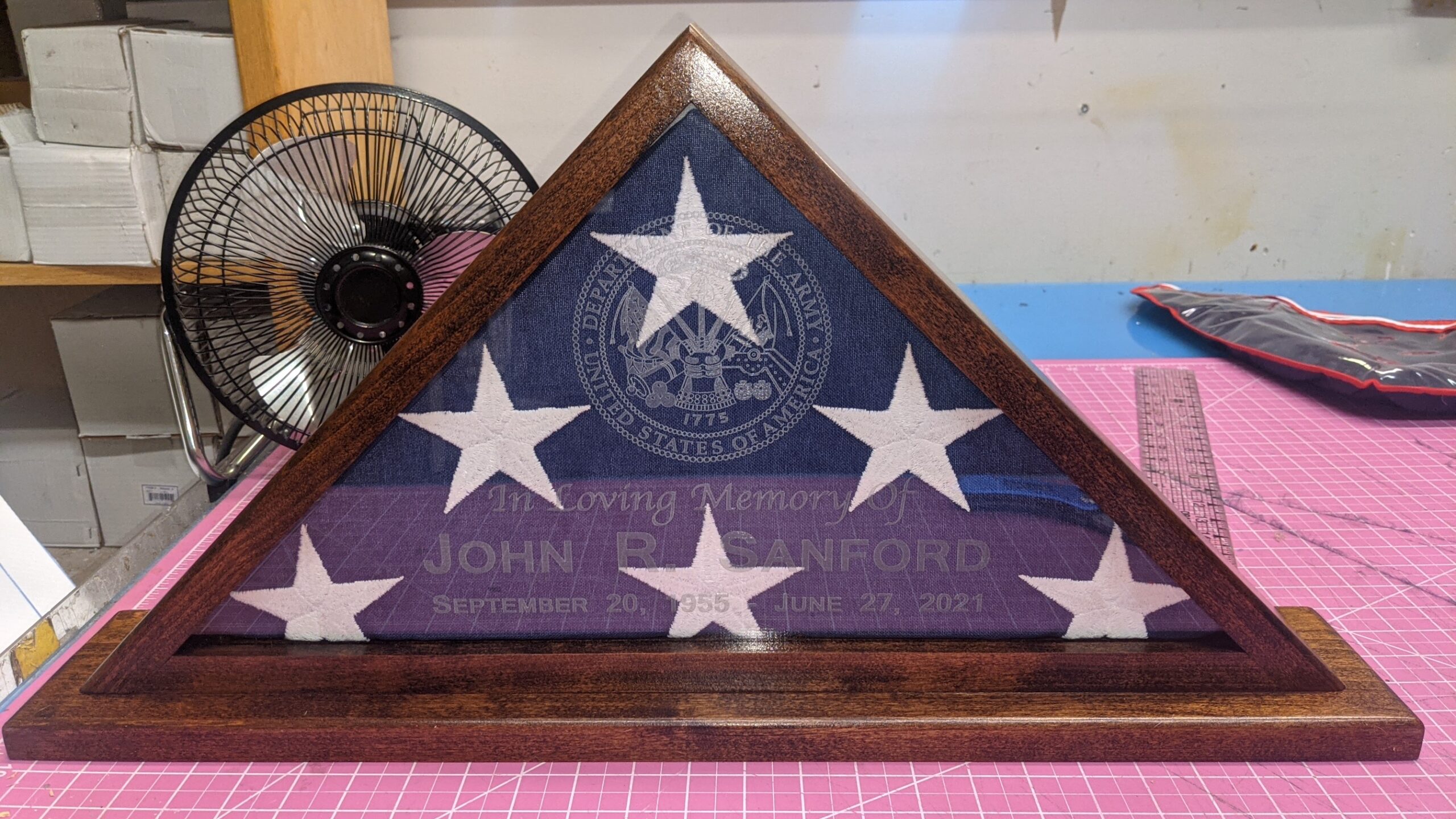 THIS FLAG CASE IS A BEAUTIFUL MEMORIAL GIFT. GLASS ENGRAVING IS INCLUDED IN THIS PRICE- IT IS $250 WITHOUT ENGRAVING. PLEASE ALLOW 2-3 WEEKS FOR BUILD AND ENGRAVING.